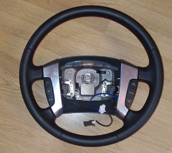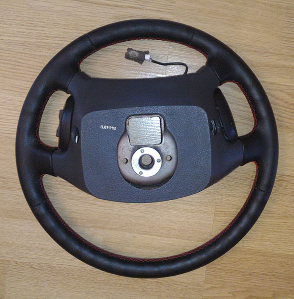 С Юрой списывался, ночь не спал, всё таки решил свой перетягивать, чёрный с нашим салоном не катит. Сейчас у меня покупная кожаная оплётка бежевого цвета, уже второй год, нормально смотрится.
