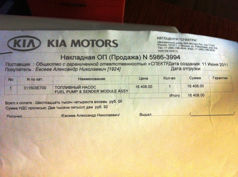 Оригинальные запчасти к системе питания( бензин)