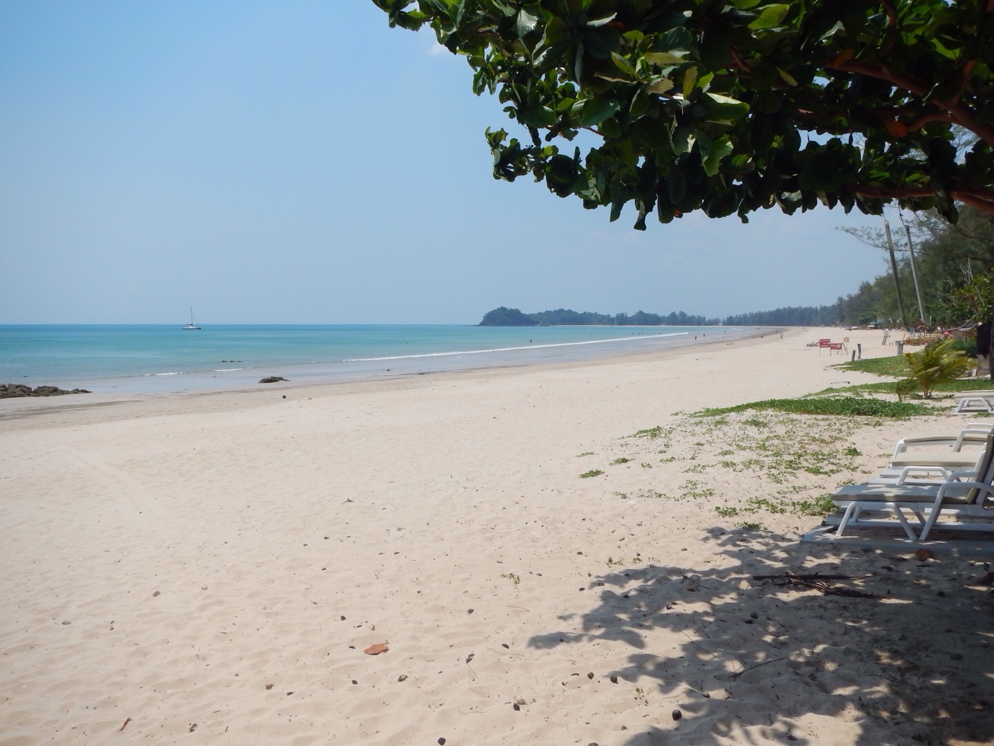 Приплыли. О-па! Реально приплыли! На острове было раз в 5 больше людей чем раньше, и соответственно лодок ибо остров не жилой. Только мы ступили на берег, к нам подбежал ушлый мужичонка и потребовал денег (200 бат с человека) на мой вопрос с какой это такой радости, он махнул в сторону плаката и объявил что Пода это теперь национальный парк и вход платный. Супер! Ну ладно, тайцы люди небогатые, а мы не обеднеем, заплатил. Пошли в доль пляжа и что же я увидел!? Да я чуть в обмоток не упал! Они от городили растительность пляжа от острова колючей проволокой в три ряда!!! Твою мать, это что за гетто? А я уже договорился чтобы лодка забрала меня в 15.00... Первый день загорать весь день на открытом солнце вообще не айс, через 30-40 минут волдырями пойдешь.. Нашел прогал в проволоке, расположились в тени, но на море смотрели из-за колючки