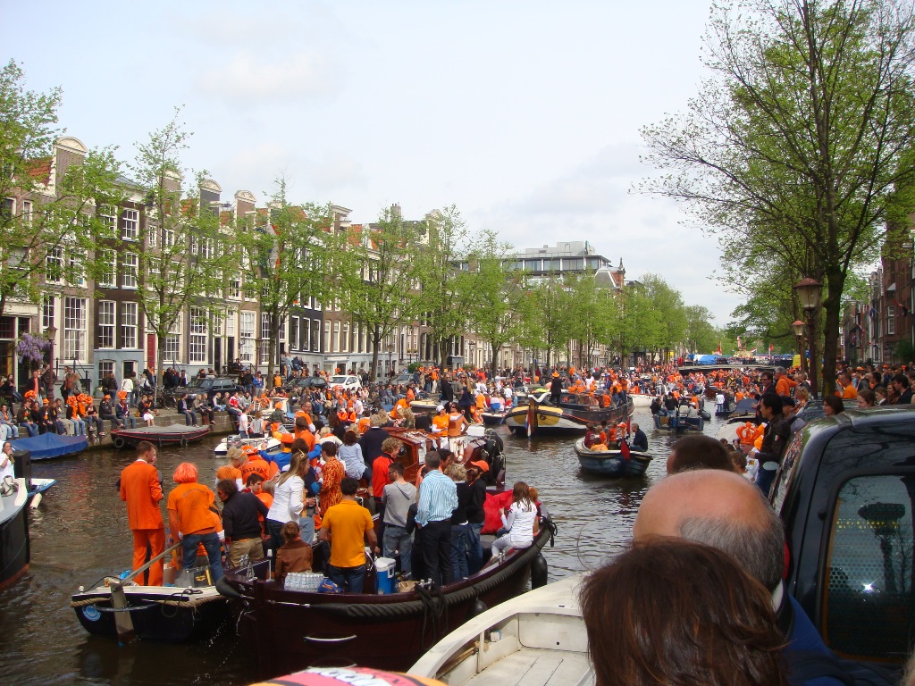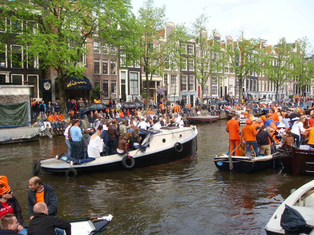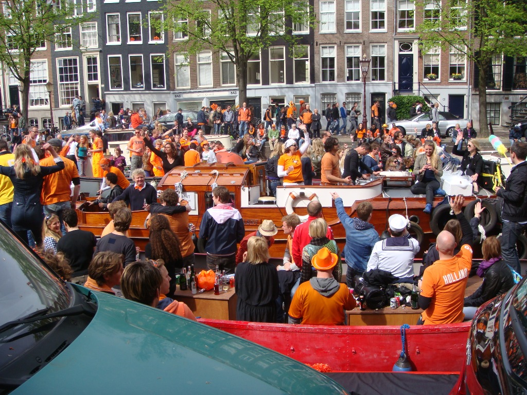У меня знакомые как раз приехали в Амстердам на след. день после празднования ДР королевы, показывали фотки и сказали, что такого срача после праздников надо еще в России поискать. Просто кругом горы всякого мусора, дебилов тоже там хватает (надпись I AM STERDAM была раскрашена краской из балончика), основной вид транспорта у них велосипеды, и их пристегивают цепями к чему-либо, так вот кто-то взял и закинул велосипед на дерево :D