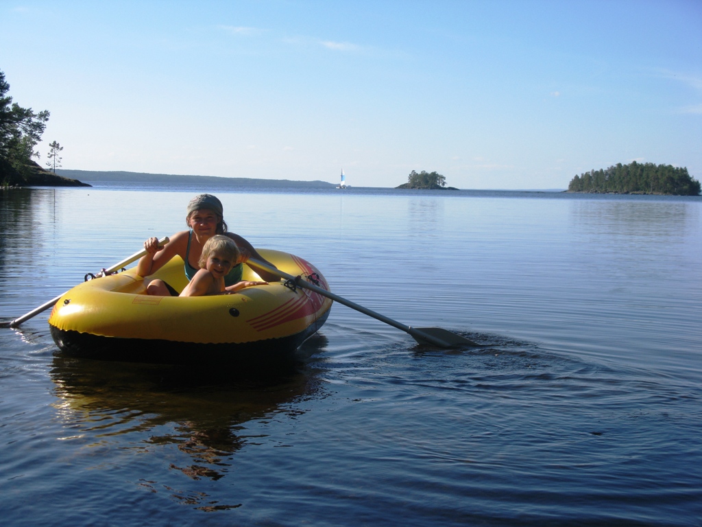 (И). (Ч)что сказать? Красота! Онега очередной раз позвала нас ещё раз приехать. 2 недели пролетели быстро. Очень переживали за нового 3-х летнего юнгу( юнга -мужского рода), но оказалас(ся) очень походным ребёнком.На катамаранах в переходы (АХ)спала как убитая ,даже когда возвращались в шторм и её волны обливали, только отворачивалась и спала до момента экстренного снятия паруса.Прошли не много ,200 км всего, но нашли отличный пляж, где стояли 3 дня. Уж очень для юнги было удобно купаться.Рыбак я хреновый, поэтому я ловил рыбаков и они делились рыбкой.Были очень удивлены встречей с двумя пенсионерами возрастом по 67 лет на байдарке 52-го года: набор из бука, только ''шкура новая ''сказали. Уже месяц по Онеге гуляют.