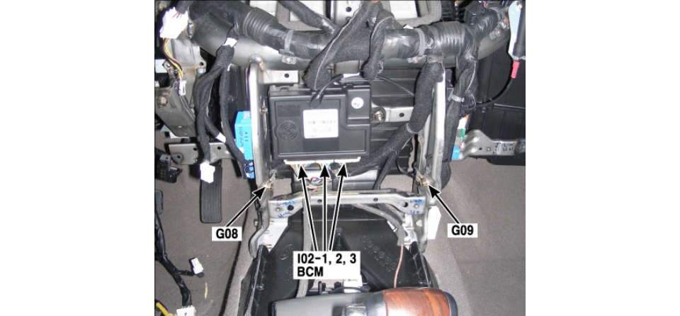 На рестайле дизеле масса блока управления АКПП подключается в салоне с левой стороны, под приборной панелью.