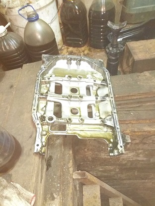 После зимы стала помаргивать лампа давления масла - подумал 5w30 жидковато - днем то "+" уже, сменил на 10w40, все равно моргает и прогрессирует порог загорания в сторону увеличения оборотов. Тут пришли ремкомплекты на форсы- все равно авто стоять будет, сниму ка поддон и посмотрю что да как. Перед этим замерил манометром давление 0,3-0,5 кг/см2 - вообще мало то на горячую. Ну снимаю поддон - отдельное спасибо конструкторам))), вижу нет болтов которые крепят маслотрубку от насоса до плиты(со стороны насоса), и в поддоне нету . В маслоприемнике сетка пробита- с палец дыра. Снимаю маслоприемник -вот и болты внутри насоса. Итог - замена насоса.