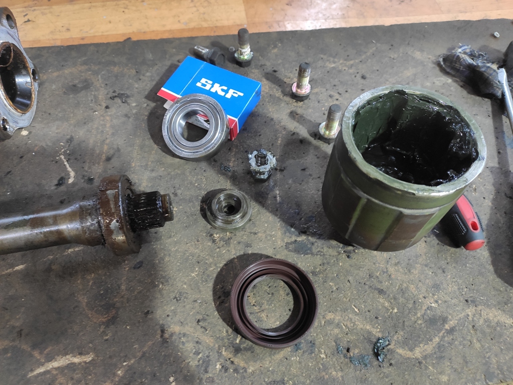 Результат пробега 300+т.км на фото. Заменил сальник и подшипник. Старый подшипник с большим люфтом но не рассыпался