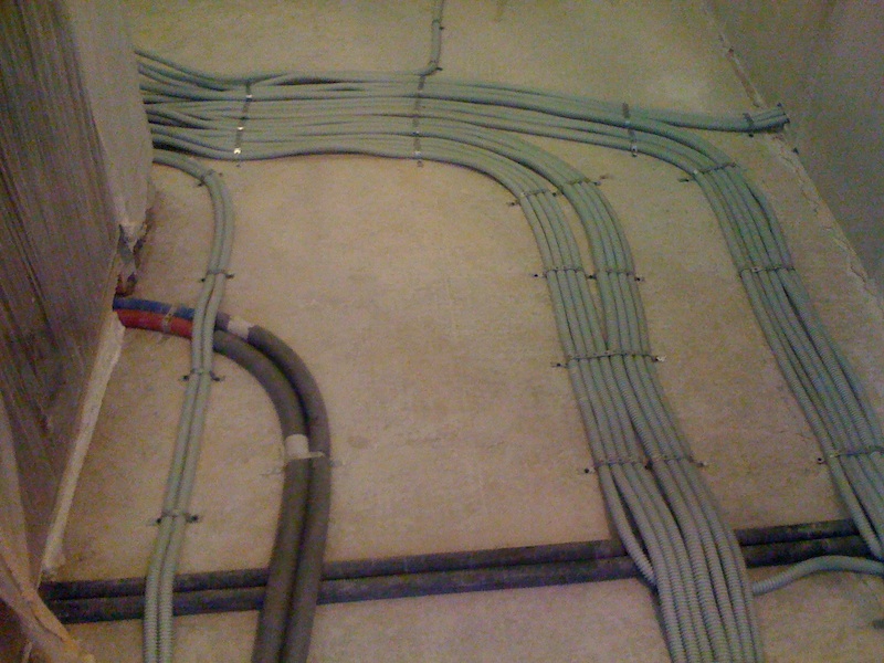 Давно не писал... итак, после возведения стен - раскладываем электрику. Никаких перемычек между розетками, всё в щит. работы - 4 дня, уложено кабеля электрического - 140 метров, витой пары.. 60. (сдвоенные розетки по 2 на комнату)