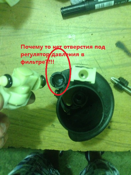 "Появляется вполне правдоподобная версия : модель 2007 года переходная, корпус бензонасоса универсальный - и под электронный датчик и под механический дроссельный клапан. В первом случае клапан не ставится, канал для этого клапана заглушен. Во втором случае эта пробка удаляется, устанавливается клапан. Вот мы ее и удалии, с хохотом и матами."