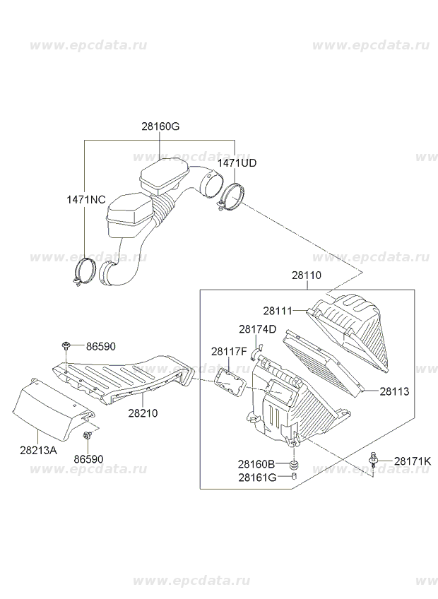Привет всем. Сориентируйте, где под каптом на Sorento XM 2011 г. (бензин) находится датчик массового расхода воздуха? Я найти не могу :oops: По каталогу запчастей он вообще не пробивается (пробивается только на дизельных) :(