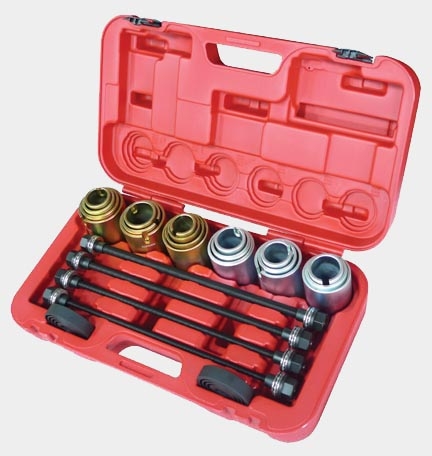Из правильного инструмента у меня были только ключи, домкрат и ножовка по металлу (старую обойму распилить). Хороший длинный болт с полной резьбой и подручные шайбы, муфты от водопроводных труб, выжимной подшипник от ВАЗ классика... Правую сторону редуктора поднимал домкратом. Но ещё раз повторюсь - я менял передний сайлентблок!