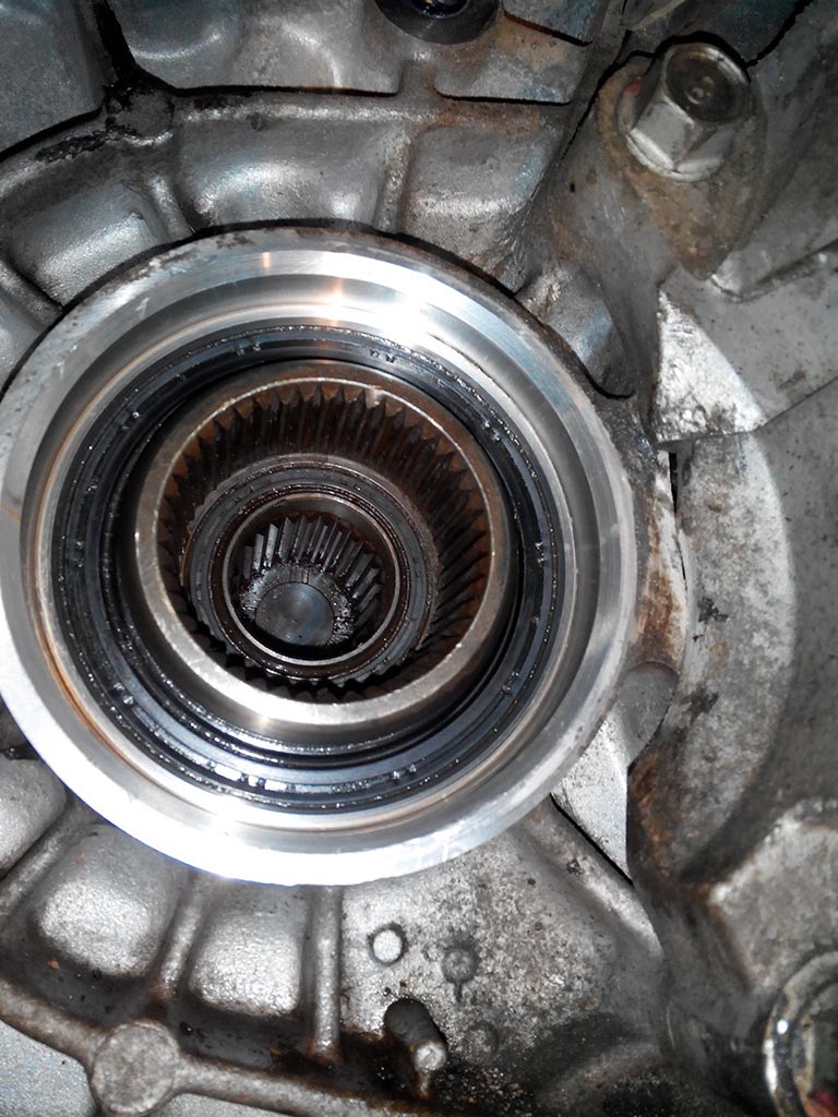 2) вал, закусанный муфтой начал стачивать втулку крепежа вала к АКПП со всеми вытикающими внутри последствиями. т.е акпп пытаетсмя крутить вал, но он "закусан" муфтой и не крутится, и соответствующие элементы на акпп стачиваются об вал.