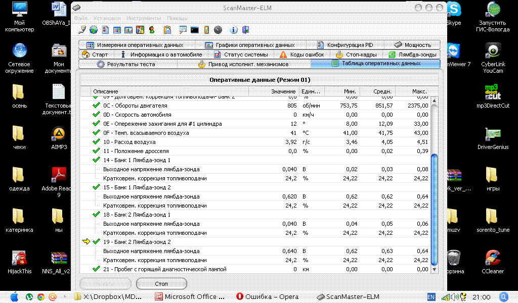 расход стал приближаться к 25ти по городу, вроде как многовато. Usb шнурком elm327 и прогой ScanmasterELM снял показания датчиков: