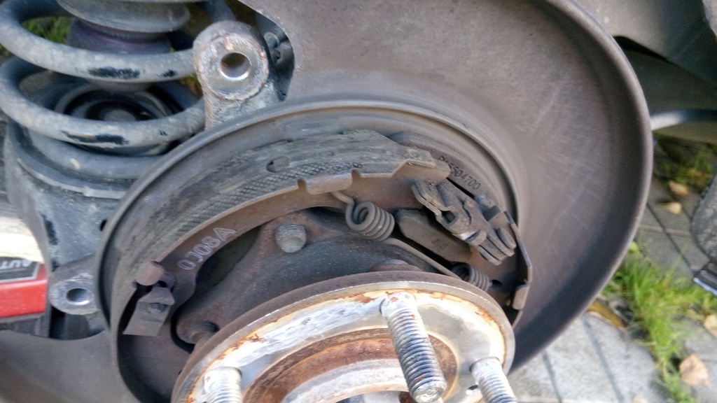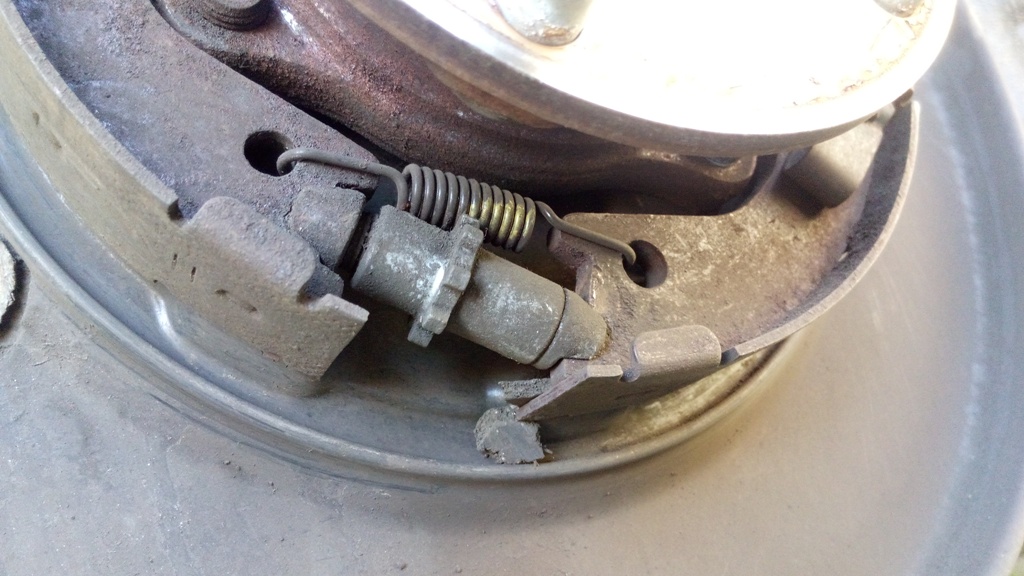 Одна колодка вообще без накладки была, накладка от второй болталась в барабане.