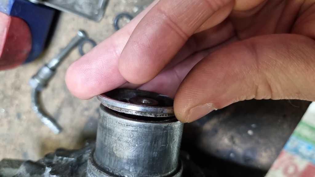 Следующий этап это снятие самой катушки - без сьемника никак! большим не подлезть. Справился 100мм трехлапый сьемник с 2мя дырками на ноге, чтобы менять длину этих ног (такой СЕРВИС КЛЮЧ 79100). Все слезло. В шкиве был под замену подшипник формата 35BD5222 (1300руб) замена на прессе 200руб.