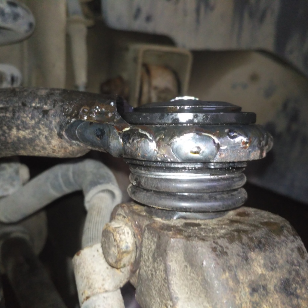 Но через день появился легкий металлический стук пред остановкой и при трогании, а т.к. помимо рычагов были заменены еще стойки, пружины и сайленты на нижнем рычаге, то снимаю колеса и смотрю, что да как, вижу, что с той стороны, где был ГМБ рычаг и большое отверстие, отломило сварку. Ну думаю причина найдена. Прям на машине обварил по кругу, поливая все это дело естественно, чтоб не сгорело. Но звук никуда не ушел. Позже по итогу нашел, что один из сайлентов до конца не затянул на рычаге и это он гремел.