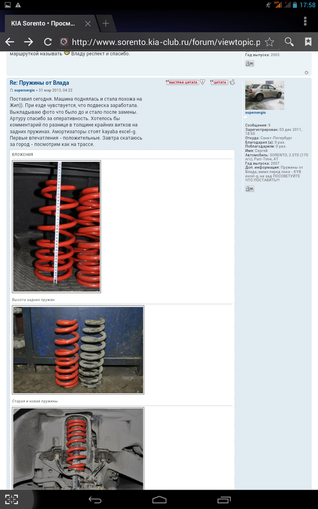 Принято.Vladsprings писал(а):нужно прислать на мою почту свежие фотки с замерами и самих установленных пружин ( для подтверждения факта просадки)
