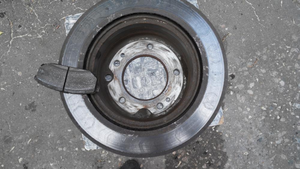Снял все посмотрел и немного удивился такому износу диска и колодки.