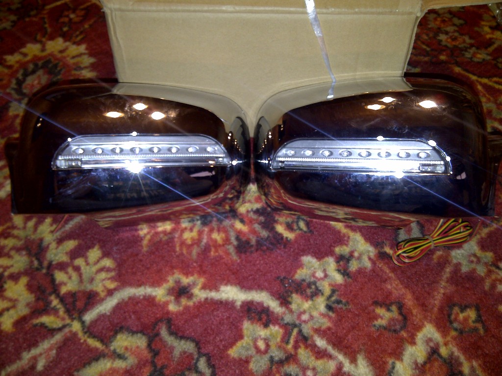 Продам комплект из 2 пластиковых накладок на зеркала заднего вида на рестайл, хром с светодиодными повторителя сигнала поворота. Для установки требуют пилить оригинальные корпуса зеркала. Фото ниже. Цена 500 р.
