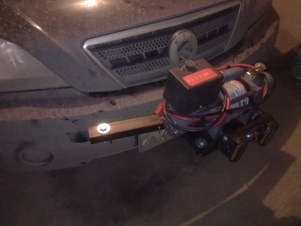 Я же написал - быстросъемный вариант. То, на чем она висит, предназначено для ее перевозки. Лебедка, при необходимости, быстро снимается (закреплена двумя болтами, на верхнем фото ближний болт с шайбой на площадке) и крепится цепями или тросом за проушины, которые под бампером. И все. Питание тоже выведено, чтоб капот не открывать. Я ее уже испытывал, но тягать из багажника больше 30кг не айс :D поэтому и смастрячил сей девайс, но только для транспотрировки.