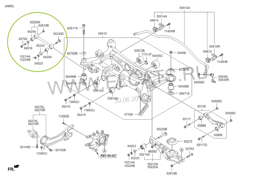Внимание по гайкам! На схеме 4WD возможно ошибка. Для развального болта нужны гайки только 54501-3E500, а код 54501-3E600 просто неудачно скопирован из другого места. Гайки 54501-3E600 с левой резьбой и на болт не накручиваются.