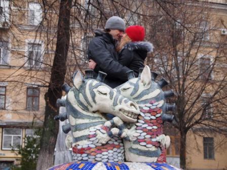 «Приятное» новогоднее «похолодание» сделало свое дело. Ледяные скульптуры, к сожалению, поплыли. Тут угадывается сова, хотя у меня вызывает ассоциацию больше с гильотиной или колодками для каторжников