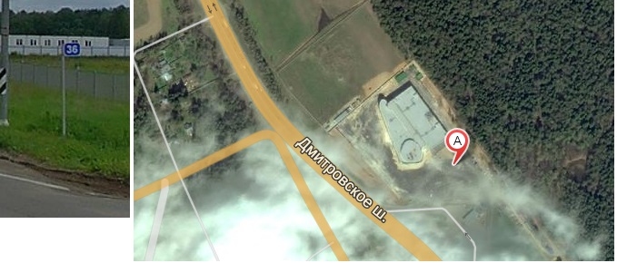 Столб 36-й км. Справа новый Торговый центр напротив музея Танка Т-34.