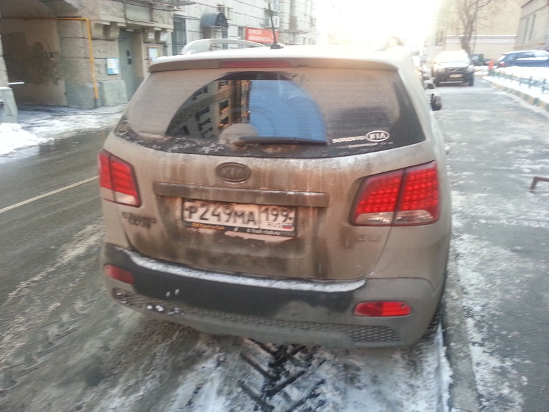, ну так как был полностью замызганный, пришлось за ним постараться угнаться, чтоб прочитать нечитаемые номера (100 с регионом 190), кстати наклеечку еле-еле тоже разглядела.. ответная хабачка!! ооочень приятно