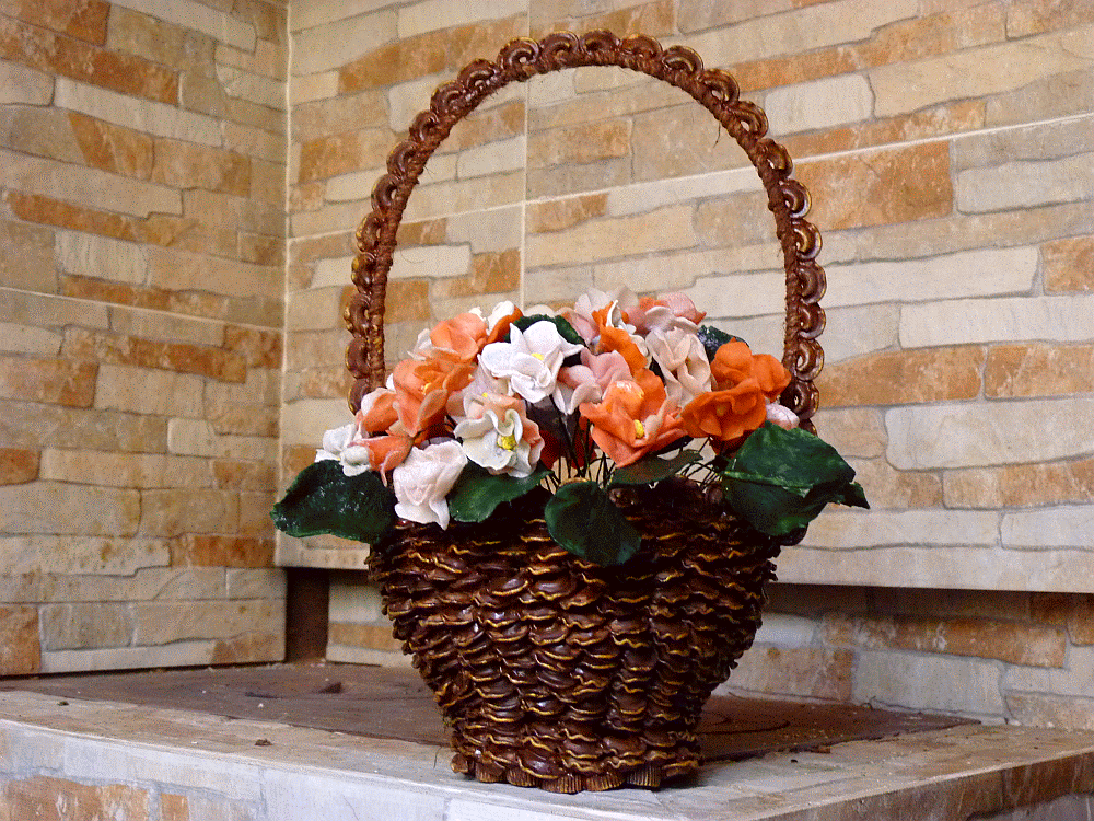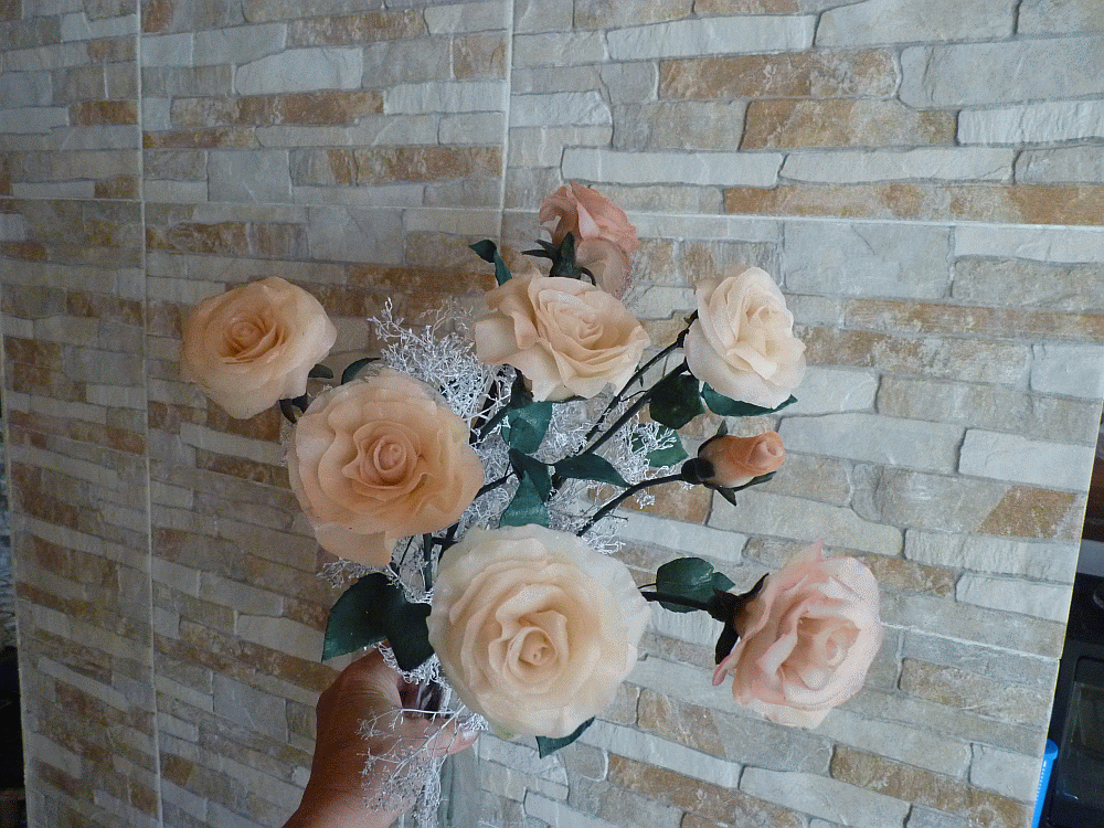 Бутылку я декорировала,а роза и листья из пластичной массы.