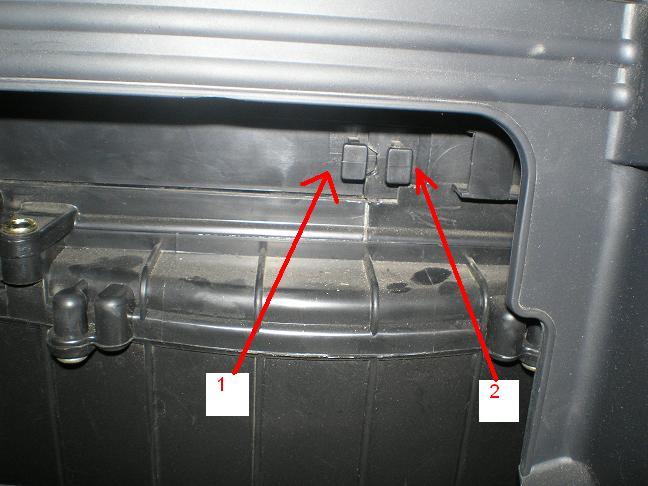 3.Берем крышку отсека фильтров за левый конец, сжимаем фиксатор двумя пальцами, снимаем крышку.