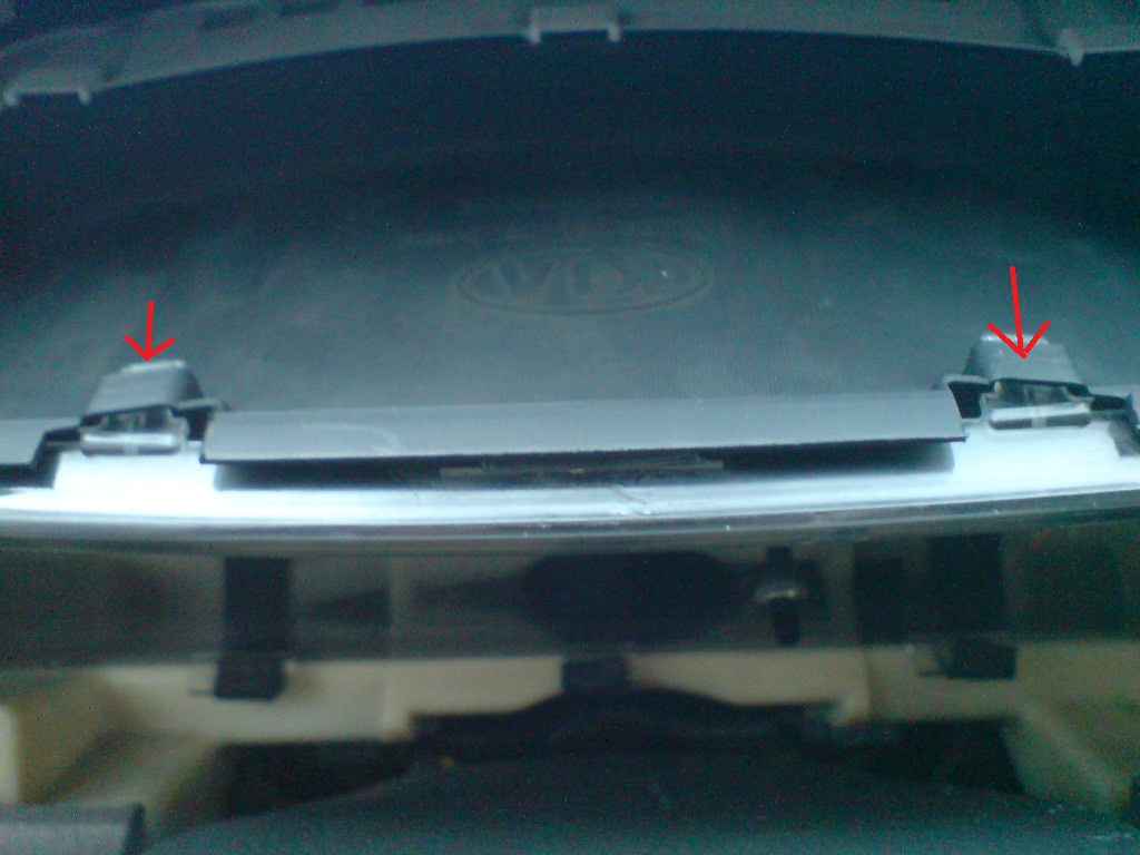 Далее снимаем стекло приборки. Сверху аккуратно вытаскиваем его из пазов: