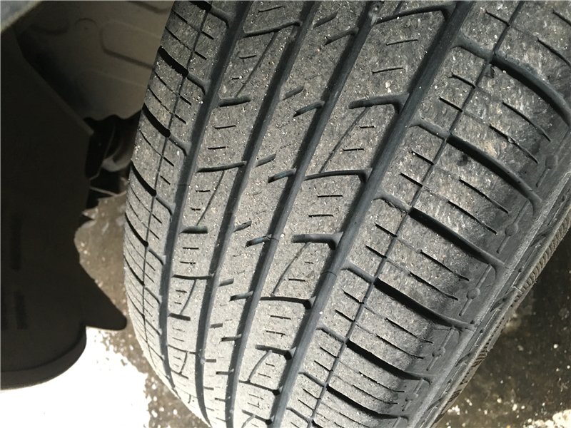 У резины износа практически вообще не видно, разве что цветные полосочки стерлись, хотя в протекторе еще остались.