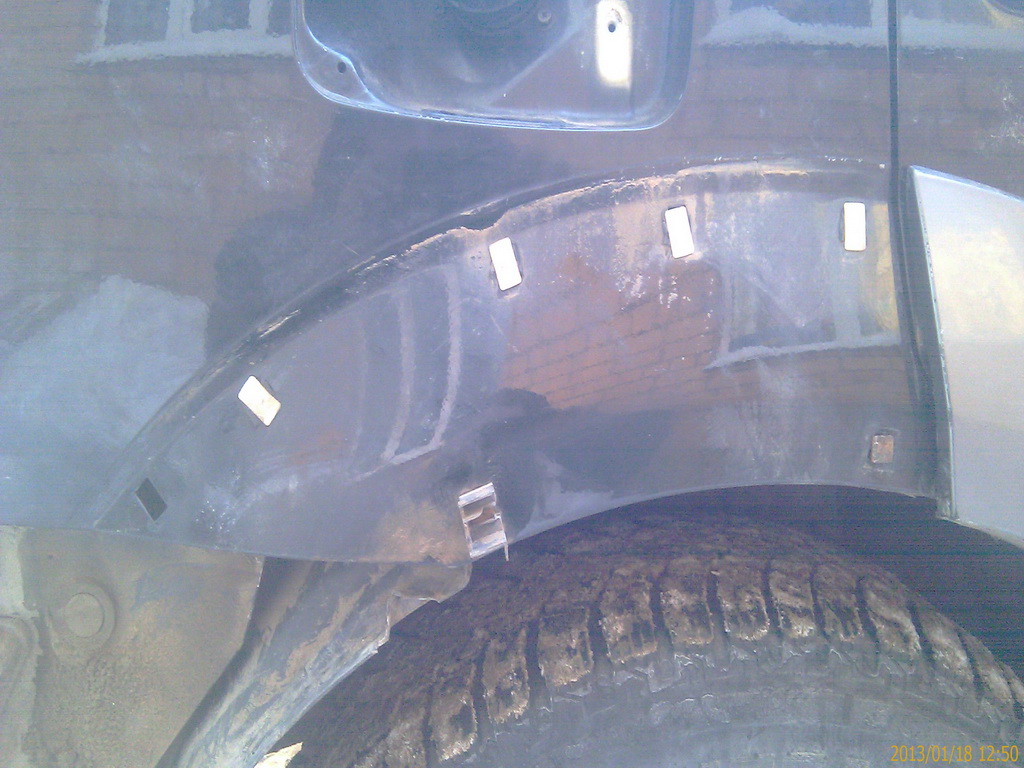 Заднее крыло после снятия накладки. Пистоны все поломались. Не церемонился с ними.