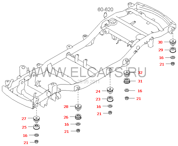 Есть предположение , что амплитуда колебаний кузова относительно рамы больше чем положено . Автомобиль дорестайл ( 2002-2006 ) , у рестайла другая рама. Может, кто-нибудь выложит фотографии подушек рамы в затянутом виде . Интересуют нижние подушки № 2( водительская ) , №3 и № 4 ( соответсвенно далее ).Если бы еще и линейку рядом приложить . Заранее благодарен .