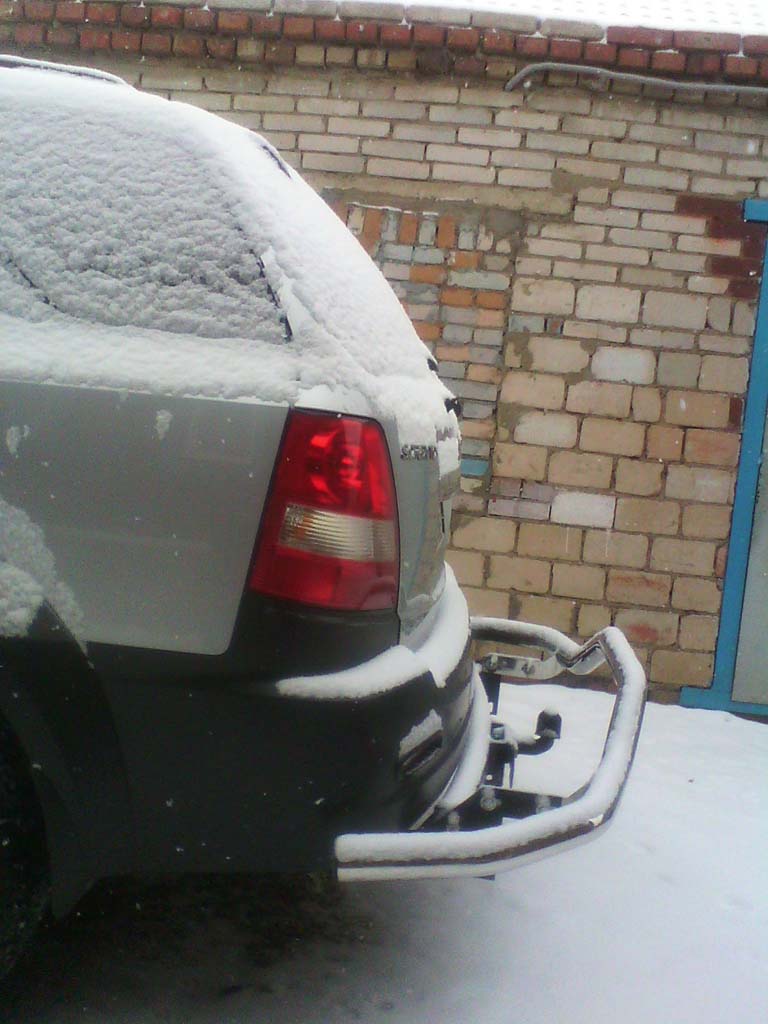 Будет хотя бы место для скадывания (до бампера) :) , а когда защита будет стоять возле бампера, тогда она точно и бампер проломит. Тем более у стены нет совсем амортизации, она конечно останется стоять на месте, а вот машины имеют свойство отлетать по инерции ( физику никто не отменял). Не буду утверждать, так как не случалось испытывать ее в действии, но на форуме говорят от мелких ДТП помогает. Для остальных случаев стоят два фаркопа, один как уже писалось выше, лишнее отрезал торчащее из под бампера, а второй видно на фото.