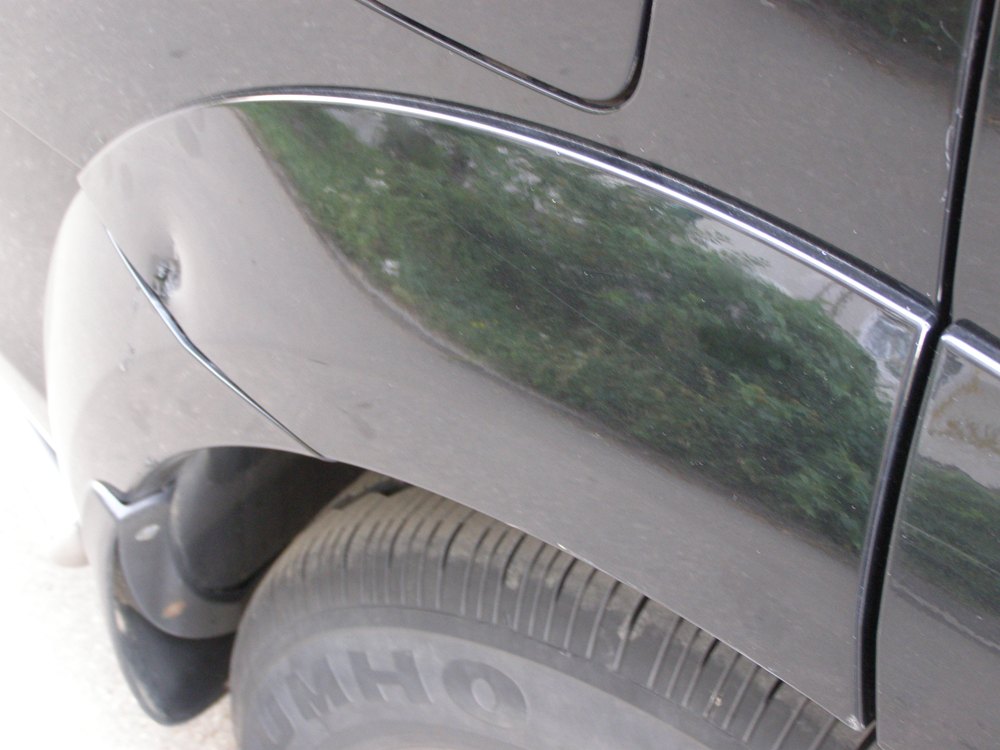 Перед тем как получить машин папик успел прицепом стукнуть накладку на крыле и получилась вмятинка.