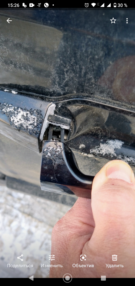 Проблема случилась неожиданно - не открывается передняя пассажирская двель снаружи. Изнутри - все ок. Во вложении - положении ручки при попытке открытия двери. Гуру, плиз, подскажите - какая причина может быть такого поведения ручки‽ тросик‽ пружинка возврата ( сомневаюсь )‽ что покупать, как ремонтировать‽