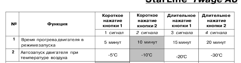 С самой сигналкой все хорошо. Но посмотрев прогноз на грядущую неделю подумал, что не мешало бы установить запуск по достижении определенной температуры. Прочитал мануал. Нашел как включается и выключается этот режим. Но! В мануале не написано как изменить температуру при которой будет производиться запуск двигателя. По умолчанию стоит -10, а я хочу -20. Нажимал кнопки и ничего. Подскажите как поменять температуру.