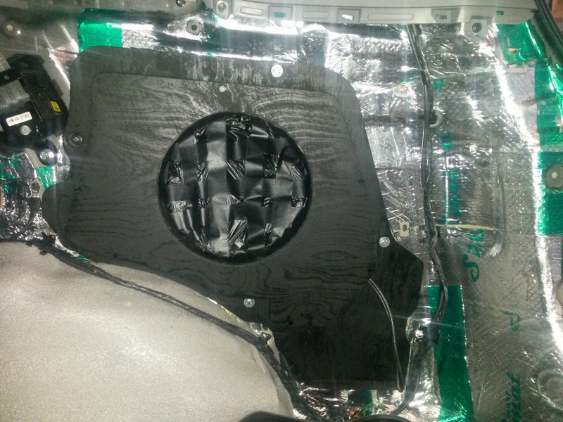 "пирог" из пластиковой обшивки, шумоизоляции 5мм, виброизоляции(2 слоя по 2мм) и передней стенки ящика.