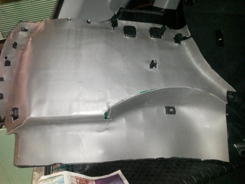 На обратной стороне пластиковой обшивки расположены ребра жесткости, высотой около 4 мм. По этому закатав в 2 слоя виброизоляцию--получим ровную поверхность.