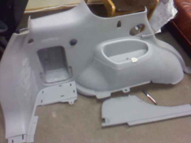 Когда все высохло(2дня)поставил облицовку на место и примерил переднюю стенку так что-бы в багажнике нижняя полка открывалась свободно.