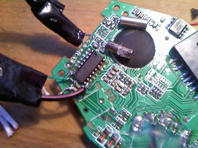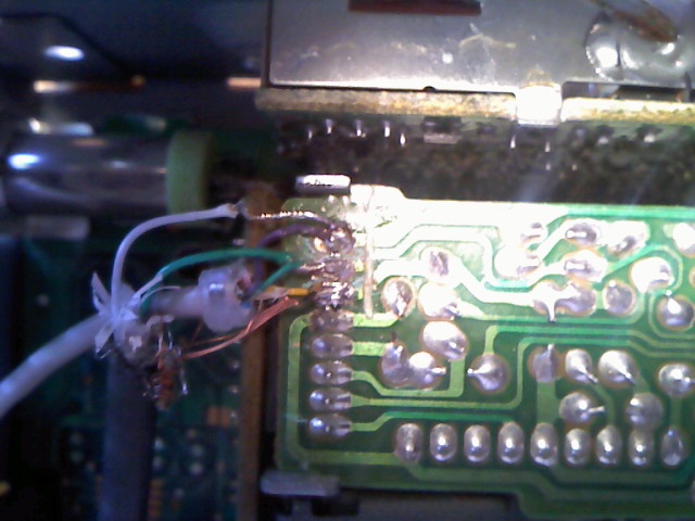 подключение AUX к касетной деке - плата на лентопротяжном механизме , дорожки к которым подключаться надо обрезать на плате