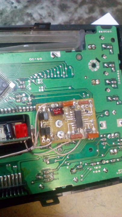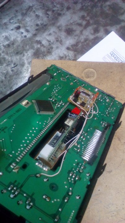 Буду впаивать светодиоды в подсветку,сфоткаю подробней.сейчас на передней панели нет платки.сделал всё по минимуму.стабилизатор 7805,обманка на 561ла7,одно сопротивление,один простой конденсатор,несколько электролитов и 4 диода.примерно так.если кто хочет загнаться как я и сделать пищалку кнопок плеера как на родной магнитоле,надо добавить ещё два реле.я взял герконовые чтоб не щёлкали. работает уже месяца 3.не доделал перемотку на руле.вернее она есть,переключает один трек.а по задумке должна переключать несколько до повторного нажатия.но может это и не надо пока устраивает и так.даже скажу что сделал чтоб несколько треков переключал,но переключает около 5ти треков и столбняк(особенности китайского плеера )поэтому оставил чтоб один трек переключал.схемы подключения я не рисовал,как то всё в голове было.там на плате заводская маркировка всех контактов.мне было достаточно и этого.буду разбирать посмотрю номиналы деталей,потому что сейчас уж не помню и куда что подсоединять.обманка это схема мигалки диода.я сделал на 561(валялась под рукой) но можно и на 555 микросхеме.смысл в том,что берём родную оптопару,ищем на ней горящий диод и подключаем его к 561 микросхеме чтоб он мигал.вот и всё.магнитола думает что катушки кассеты крутятся и реверс с автостопом не срабатывают.но ещё надо сделать 2 перемычки вместо концевиков через диоды.чтоб магнитола ещё знала какая функция сейчас стоит(стоп или плей). с начало делал через реле.но оно щёлкает.попробовал перемычками ,вроде получилось.кому интересно спрашивайте что не ясно.чистота звука офигенное.затраты мизерные если сими делаете.от лентопротяжки оставляем только корпус с платой где разъём.китайский плеер берём самый дешёвый без блютуза.с блютузом на ютубе говорят нужно каждое включение громкость убавлять.но сам я не проверял.пока всё.сниму видео ,покажу.