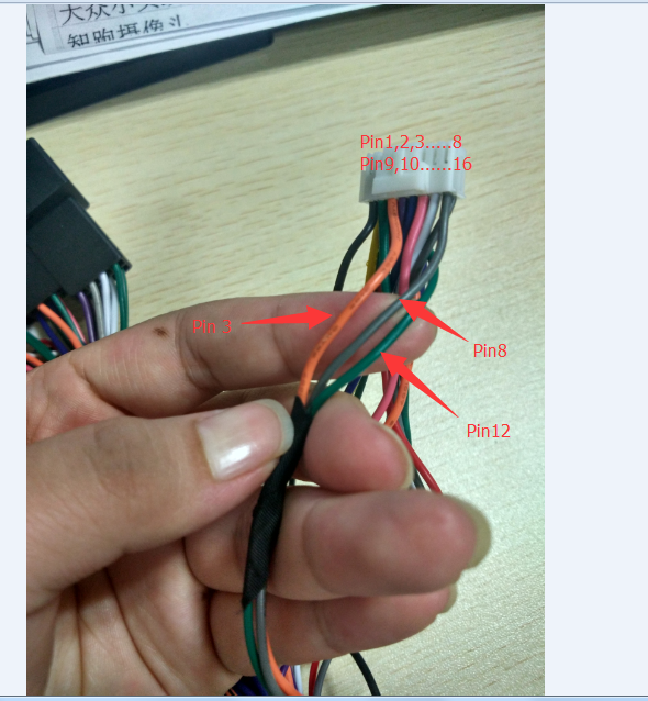 Or you can only connect the pin 8 and pin 12 wire together first, then check whether your car rear camera can work.