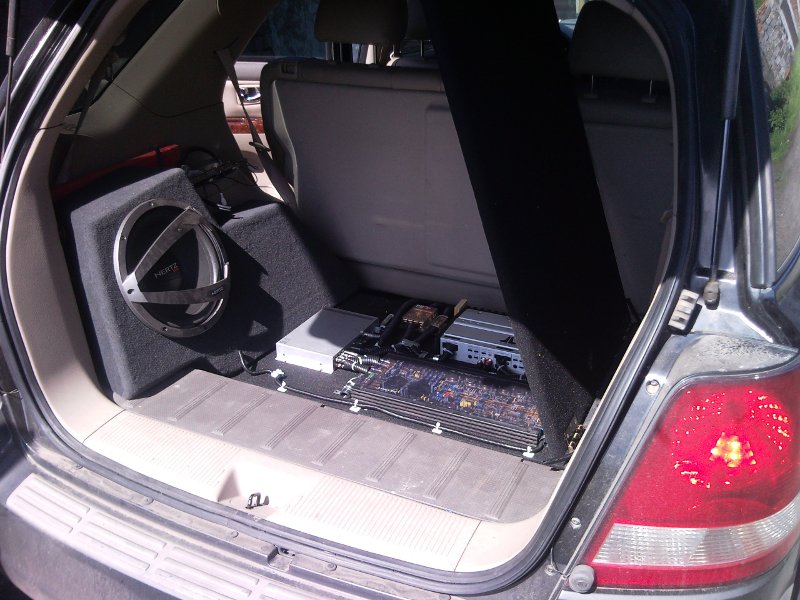 Установил весь аудиотракт в багажнике.