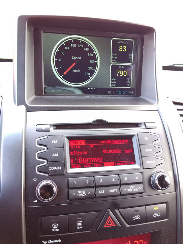 Инсталлируется на авто все достаточно быстро в теч. часа (спасибо форуму за инфу по снятию панели, сам бы долго репу чесал). Выход звука я подал просто на гнездо входа (поленился разобраться в проводах гнезда, чтобы не торчал спереди штекер - не напрягает). Питание взято с предохранителя. Для флешки сделан удлинитель, торчащий внизу в кармане под прикуривателем. Башку с часами и индикатором ремней сначала выкинул, потом пришлось вернуть на место, ибо без данного блока выдает ошибку подушки). Поставил программку автоматизации Tasker, которая при подаче питания сразу запускает мне Яндекс карты, а при отключении все сворачивает, чтобы экран сам выключался. Пока только положительные эмоции, надеюсь, так будет и дальше :). Ездил на дальняк, жена всю дорогу смотрела кино, и время даже быстрее тикало :).