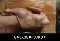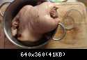 Аккуратно, пальцами пытаемся отделить кожу от тушки. Нужно быть очень аккуратным, ибо кожа на вид толстая может легко порваться. В первоисточнике сказано, что кожа отделенная от тушки становится в процессе приготовлении тонче и нежнее.