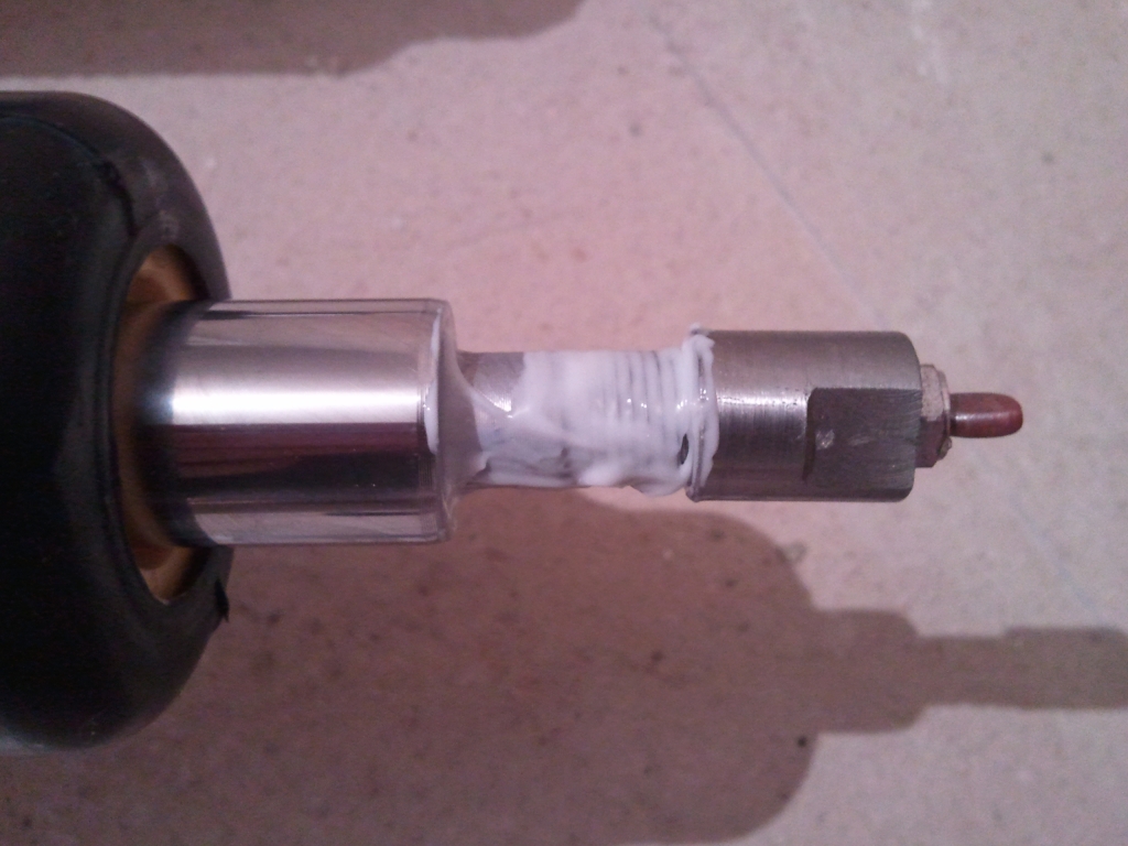 Сразу бросилось в глаза, что вверху диаметр штатного амортизатора увеличивается. Об этом не однократно писалось на форуме, но как обычно бывает обращаешь на это внимание только после того как с этим столкнешься. Поскольку толщина стенок будущих втулок меньше 1 мм, крайне не хотелось бы, чтобы "усы" картриджа оказались в этом промежутке.