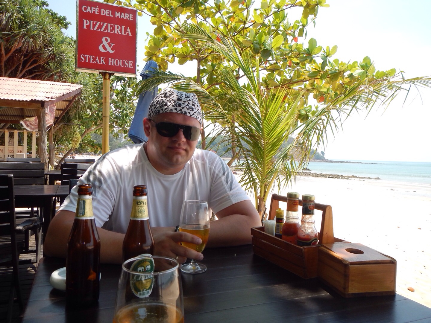Решил с горя напиться пива, пошел в кафешку в глубине острова.. О-па! А кафешки то больше нету! Навес только от нее остался, заваленный строительным мусором.. У входа мялся таец рядом с большим термобоксом. Спрашиваю "хлопец, пиво е?" Конечно говорит Е!