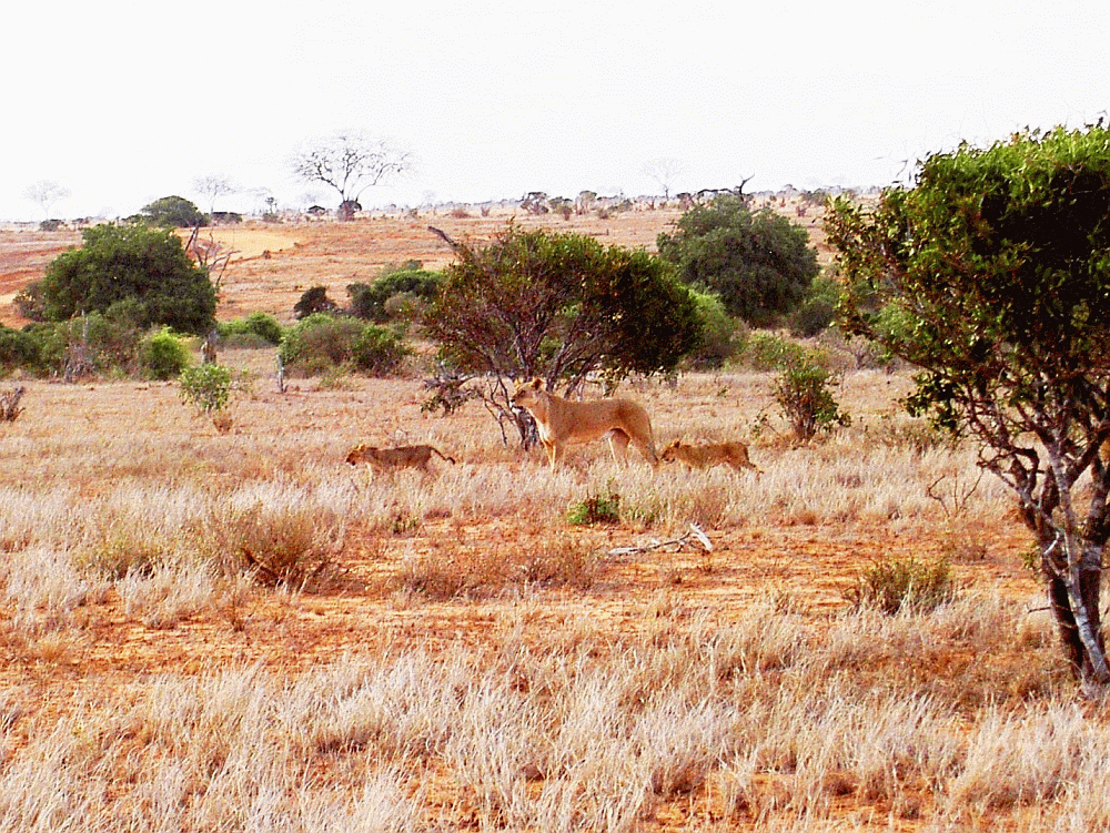 А тут мы нарисовались и машиной закрыли обзор,львицы забеспокоились и ,на всякий случай,решили привести деток поближе.