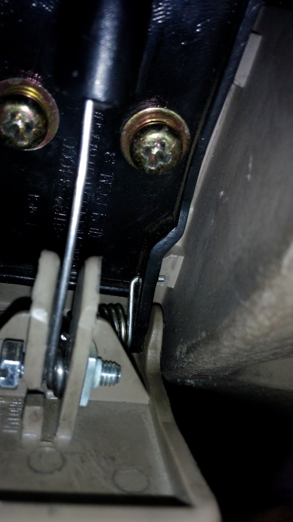 Кто в курсе, как фиксируется рубашка троса открывания капота в салоне? В первом приближении, банально вставляется в прорезь пластика около ручки открывания, но не фиксируется и при открывании капота - рубашка троса выскакивает с посадочного места.
