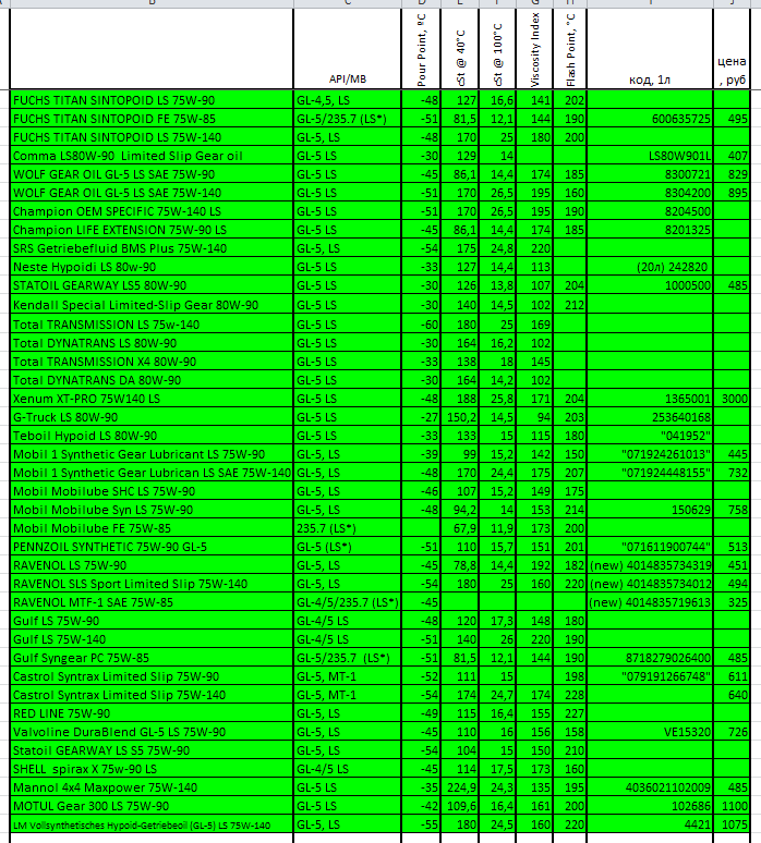 Gubkin писал(а):Просьба обновить подборку масел LS