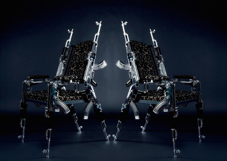 В мирной стране и в мирное время оружие может превратиться в предмет интерьера. Нам бы искренне хотелось, что все в мире автоматы стали подлокотниками или каркасом для мебели. Но пока что можем констатировать, что лишь в Австрии можно купить стулья, созданные из автоматов Калашникова.